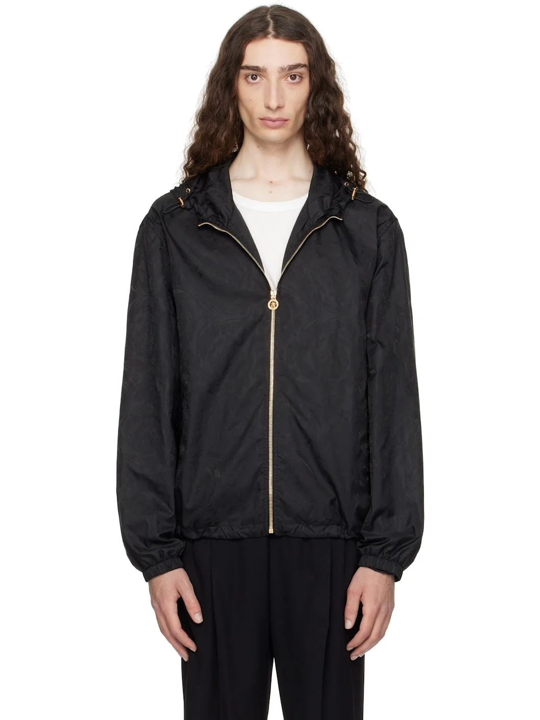 Black Barocco Jacquard Windbreaker Jacket