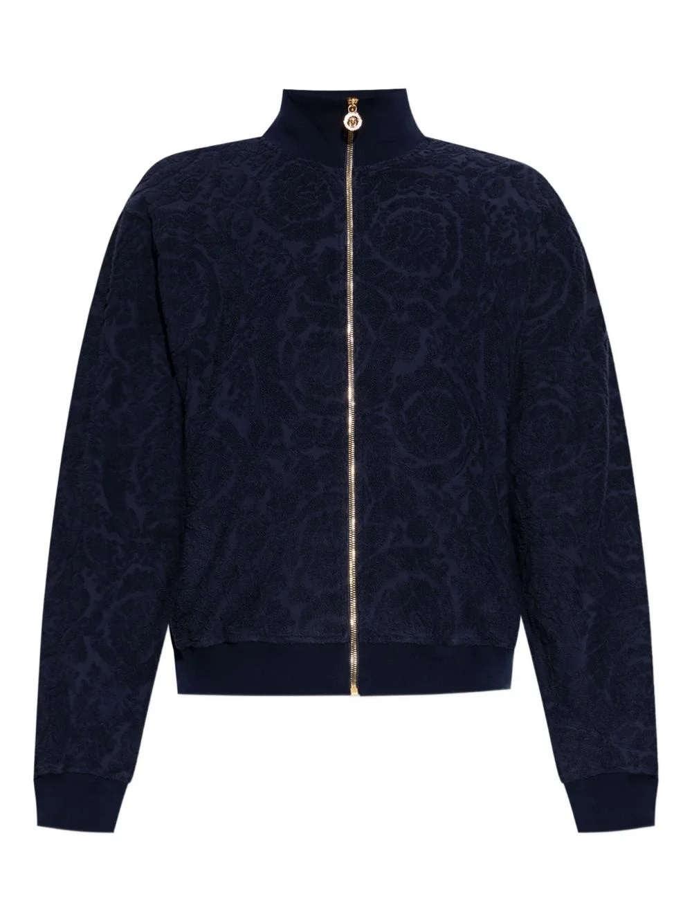 Barocco-jacquard zip-up jacket Highlights - Navy blue - Barocco jacquard pattern - Zip fastening - Ribbed cuffs - Ribbed hem - Gold-tone medusa head zip puller Imported Composition Cotton 100% Washing instructions Read Manufacturer Guidelines