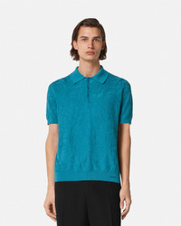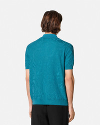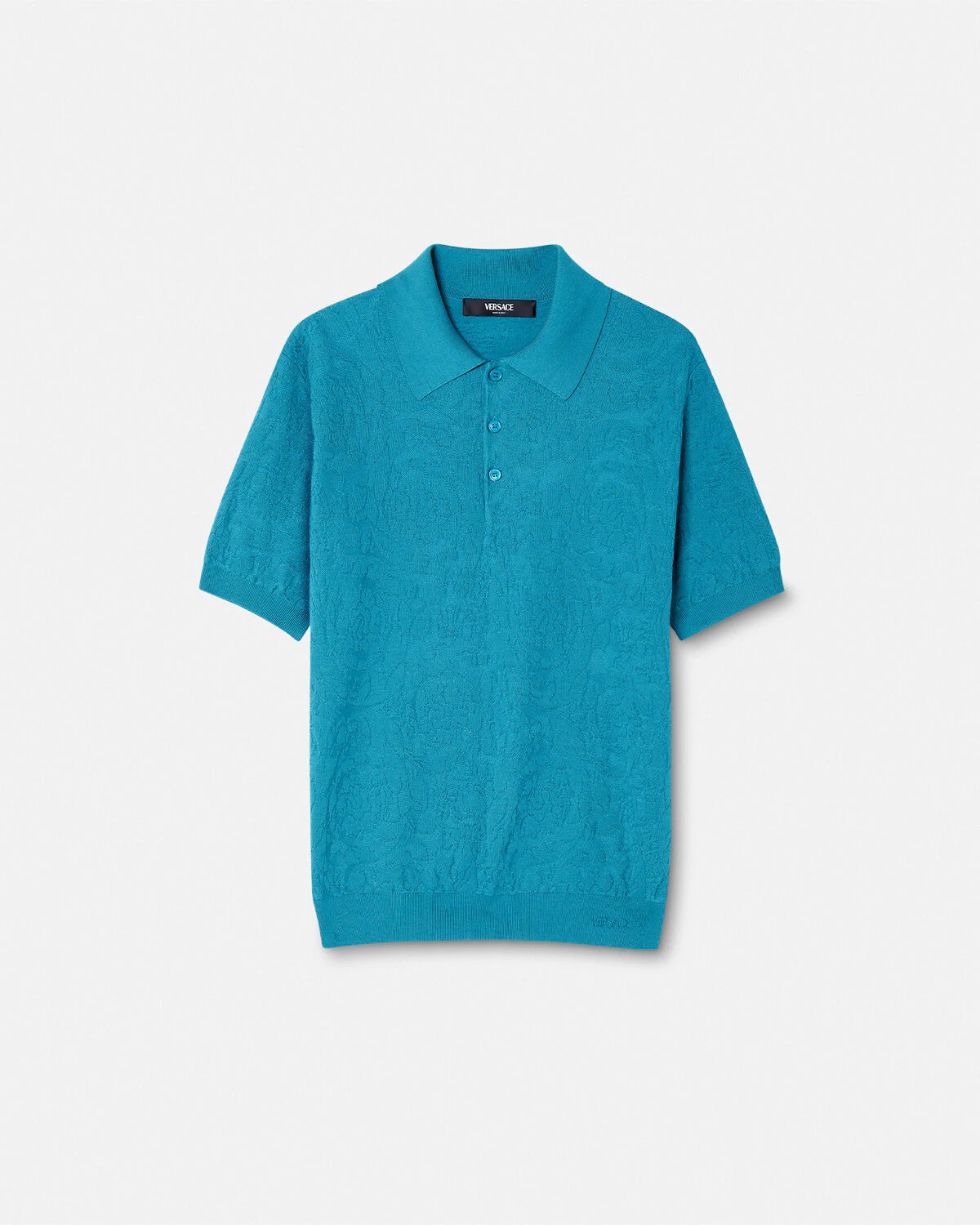 DETAILS A shortsleeved polo shirt knit from a silk and cotton blend featuring a tonal Barocco motif - Barocco pattern - Pointed collar - Three-button placket - Ribbed trims - Outer composition: 57% Silk, 43% Cotton - Embroidery: 70% Viscose, 30% Polyester Item: 1007765-1A09457_1GO60 SIZE & FIT - The model is 5'8" tall and wears size 38 IT