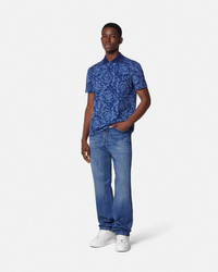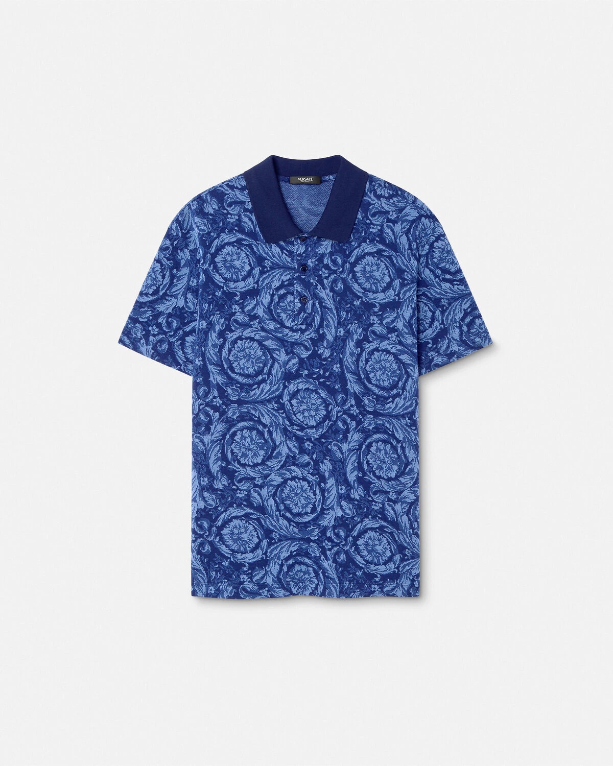 DETAILS This shortsleeved Barocco jacquard cotton piqu polo shirt features a three button placket - Barocco pattern - Short sleeves - Pointed collar - Three-button placket - Outer composition: 100% Cotton - Trim: 100% Cotton Item: 1013906-1A09796_2UZ50 SIZE & FIT - The model is 6'2" tall and wears size M