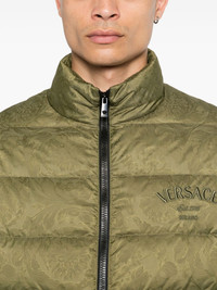 Barocco-print padded jacket Highlights - Olive green - Textured finish - Signature barocco print - Padded design - Goose down blend - Quilted - Stand-up collar - Long sleeves - Elasticated cuffs - Embroidered logo at the chest - Two side welt pockets - Front zip fastening Imported Composition Outer: Polyester 100%, Viscose 100%, Polyamide 100% Lining: Polyester 100%, Cotton 100%, Goose Down 80%, Goose Feather 20% SIZE & FIT Model measurements Height 6 ft 1 in(1.85 m) Bust/Chest 35.82 in(91 cm) Hips 37.79 in(96 cm) Waist 29.13 in(74 cm) FittingInformation Designed for a relaxed fit, this piece allows for comfort and movement when worn The internal drawstring at the hem allows for fitted preferences Made from a padded non-stretch fabric, giving it no natural elasticity This piece fits true to size – take your usual size