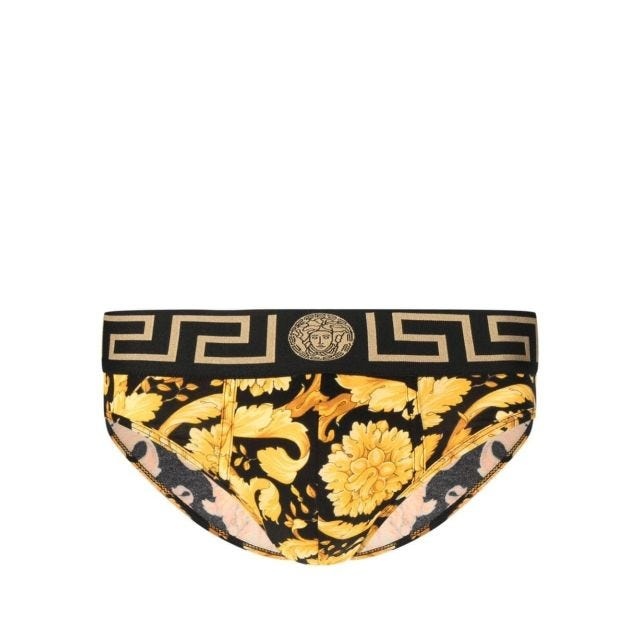 Product Code: 10013831A005155B010 Baroque print briefs Jersey workmanship Logo waistband Stretchy design Cotton 94%, Spandex/Elastane 6% DETAILS Colour: Multicolour Hand Washing SIZE AND FIT True to size