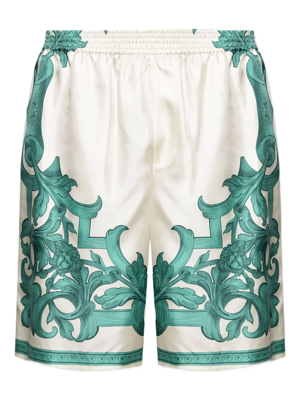 baroque print silk shorts Highlights - Cream - Baroque-inspired print - Elasticated waistband - Contrast trim - Side pockets - Relaxed fit Made in Italy Composition Outer: Silk 100%