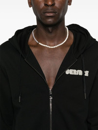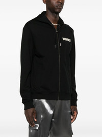 crystal-embellished logo zip-up hoodie Highlights - Black - Cotton - Jersey texture - Drawstring hood - Long sleeves - Ribbed cuffs and hem - Logo print at the chest and rear with crystal embellishment - Two side welt pockets - Straight hem - Front zip fastening Made in Italy Composition Outer: Cotton 100%, glass 100% Lining: Cotton 100% SIZE & FIT Model measurements Height 6 ft 2 in(1.87 m) Bust/Chest 36.41 in(92.5 cm) Hips 37 in(94 cm) Waist 29.52 in(75 cm) FittingInformation Designed for a relaxed fit, this piece allows for comfort and movement when worn Made from a midweight non-stretch fabric, this piece offers minimal elasticity when worn This piece fits true to size – take your usual size