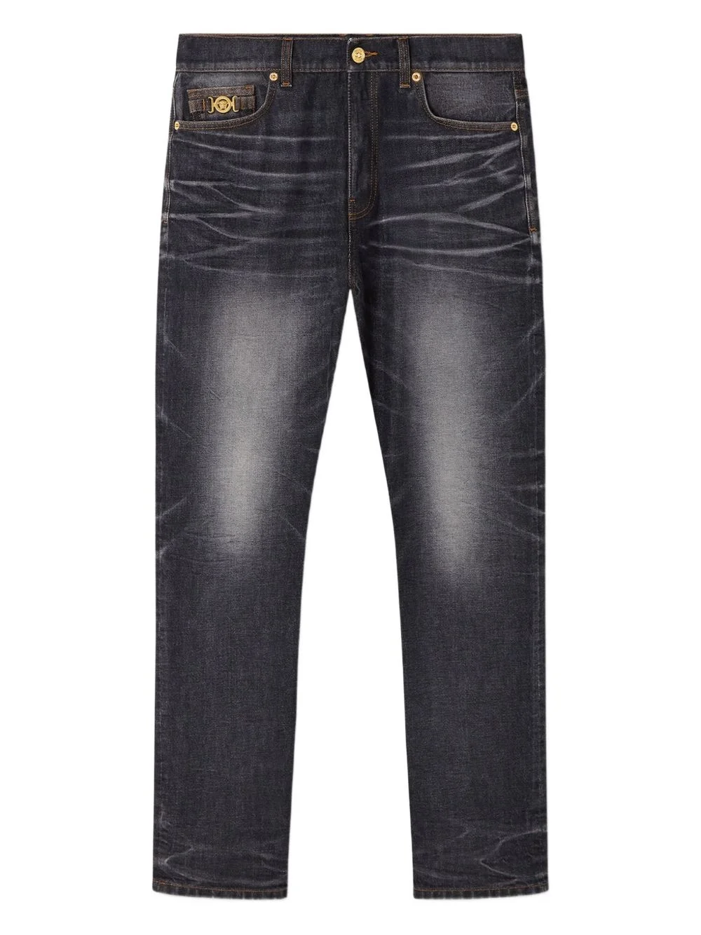 Medusa Biggie jeans Highlights - Black - Concealed fly and button fastening - Classic five pockets - Medusa head motif - Logo patch to the rear Made in Italy Composition Calf Leather 100% Outer: Cotton 100% Washing instructions Read Manufacturer Guidelines