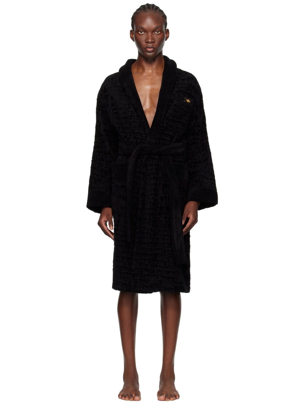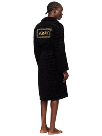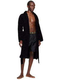 Cotton terry cloth robe. Jacquard graphic pattern throughout. · Shawl lapel · Open front · Medusa hardware at chest · Patch pockets · Detachable self-tie belt and belt loops · Logo embroidered at back Supplier color: Black