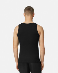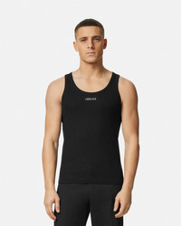 DETAILS A cotton-blend ribbed tank undershirt featuring a Versace logo embroidery. - Versace logo embroidery - Sleeveless - Round neckline - Outer composition: 93% Cotton, 7% Elastane - Embroidery: 100% Polyester Item: 1013125-1A09410_1B000 SIZE & FIT - The model is 6'2" tall and wears a size 4 IT