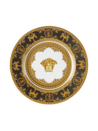 Porcelain side plate in white. Signature Medusa and floral pattern in gold-tone. - Matte porcelain border in black - D7.25 / D18 cm Part of the limited edition Rosenthal meets Versace collection. Supplier color: Nero