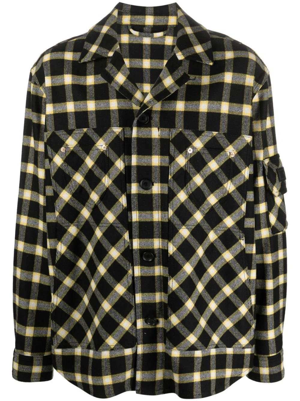 button-down checked shirt jacket Highlights - Black/white/citron pale yellow - Wool blend/cotton - Check pattern - Spread collar - Front button fastening - Long sleeves - Buttoned cuffs - Two chest patch pockets - Sleeve flap pocket - Two front pouch pockets - Curved hem Made in Italy Composition Outer: Calf Leather 100%, Wool 70%, Polyamide 30% Lining: Cotton 100% SIZE & FIT Model measurements Height 6 ft 2 in(1.87 m) Bust/Chest 36.22 in(92 cm) Hips 37 in(94 cm) Waist 27.95 in(71 cm) FittingInformation Designed to be unstructured, offering a loose fit throughout Made from a midweight non-stretch fabric This piece fits true to size – take your usual size Measurement CHEST 52.75 in(134 cm) SLEEVE LENGTH 25.19 in(64 cm) LENGTH 31.1 in(79 cm)