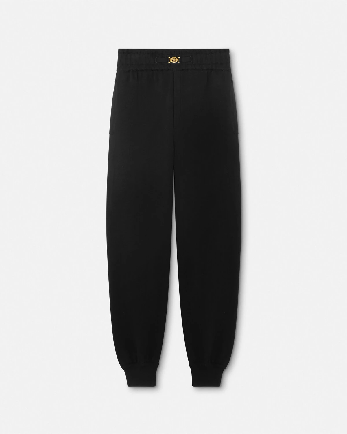 DETAILS These cotton and cashmere blend knit sweatpants have a comfortable ribbed waistband accented by a Medusa Biggie hardware - Medusa Biggie hardware - Side pockets - Ribbed waistband and cuffs - Outer composition: 85% Cotton, 15% Cashmere - Trim: 76% Cotton, 14% Cashmere, 8% Nylon, 2% Elastane Item: 1018719-1A12912_1B000 SIZE & FIT - The model is 6'1" / 1.87 m tall and wears size 48 IT