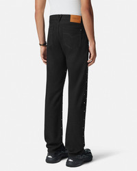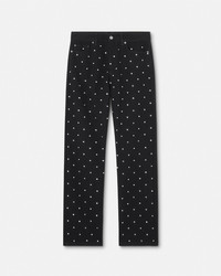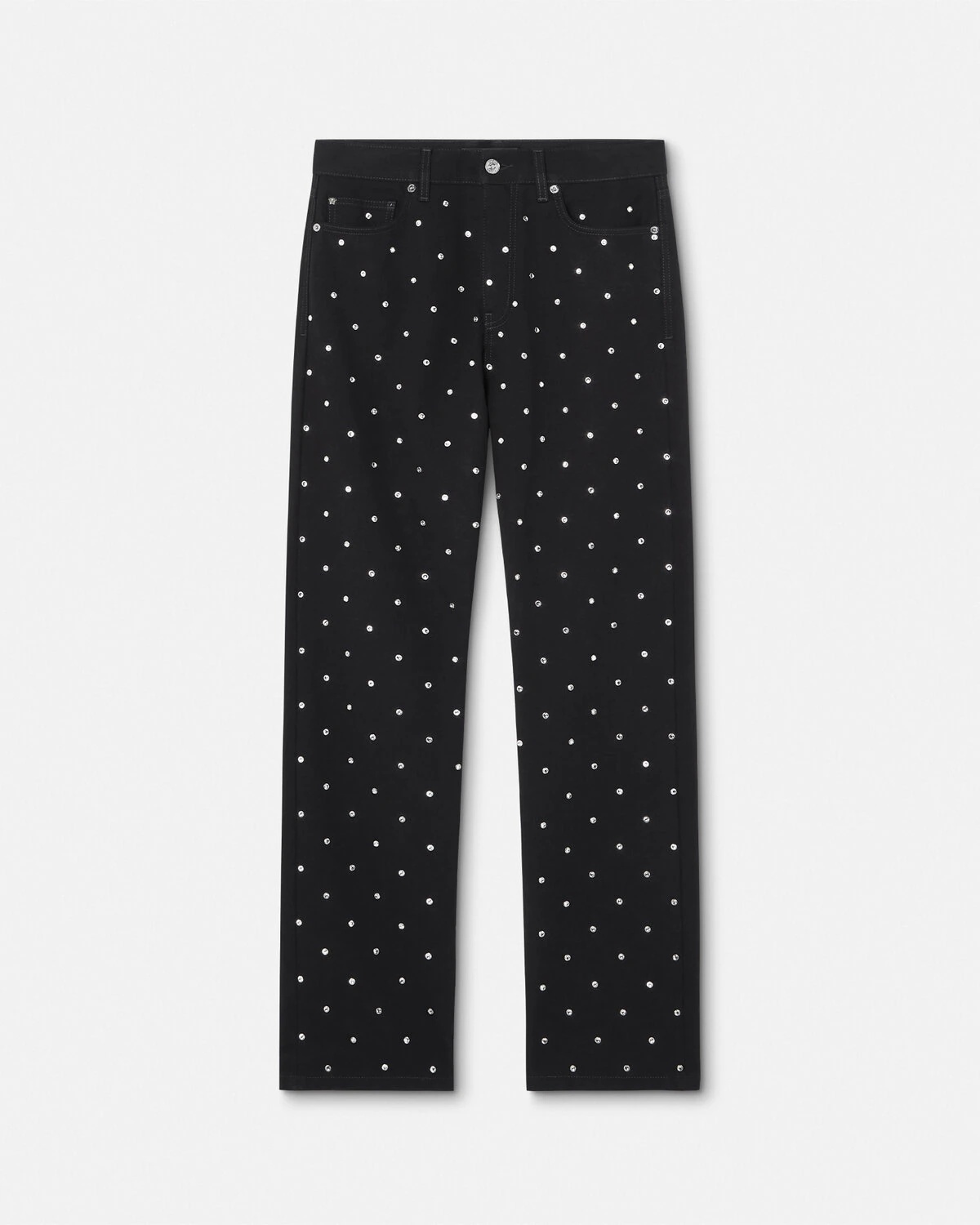 DETAILS These regularfit jeans have a fivepocket design and feature allover crystal studs in a starry sky motif Cielo Stellato in Italian - Crystal embellishments - Versace logo leather patch - Belt loops - Five pocket design - Outer composition: 100% Cotton - Trim: 100% Calf leather Item: 1018924-1A13591_1D040 SIZE & FIT - The model is 6'1" / 1.87 m tall and wears size 32 IT