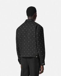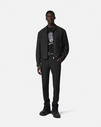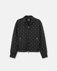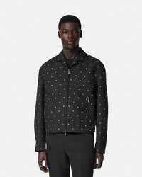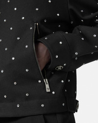 DETAILS This cavalry wool blouson jacket features allover crystal studs in a starry star motif Cielo Stellato in Italian The outerwear style is accented by enamel Medusa hardware and is fully lined in a tonal jacquard Barocco pattern - Barocco print lining - Medusa hardware - Crystal embellishments - Long sleeves - Pointed collar - Front zip closure - Side zip closure - Snap-buttoned cuffs - Outer composition: 100% Pure virgin wool - Lining 1: 100% Cupro - Lining 2: 100% Cotton Item: 1018847-1A13491_1B000 SIZE & FIT - The model is 6'1" / 1.87 m tall and wears size 48 IT
