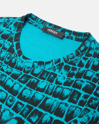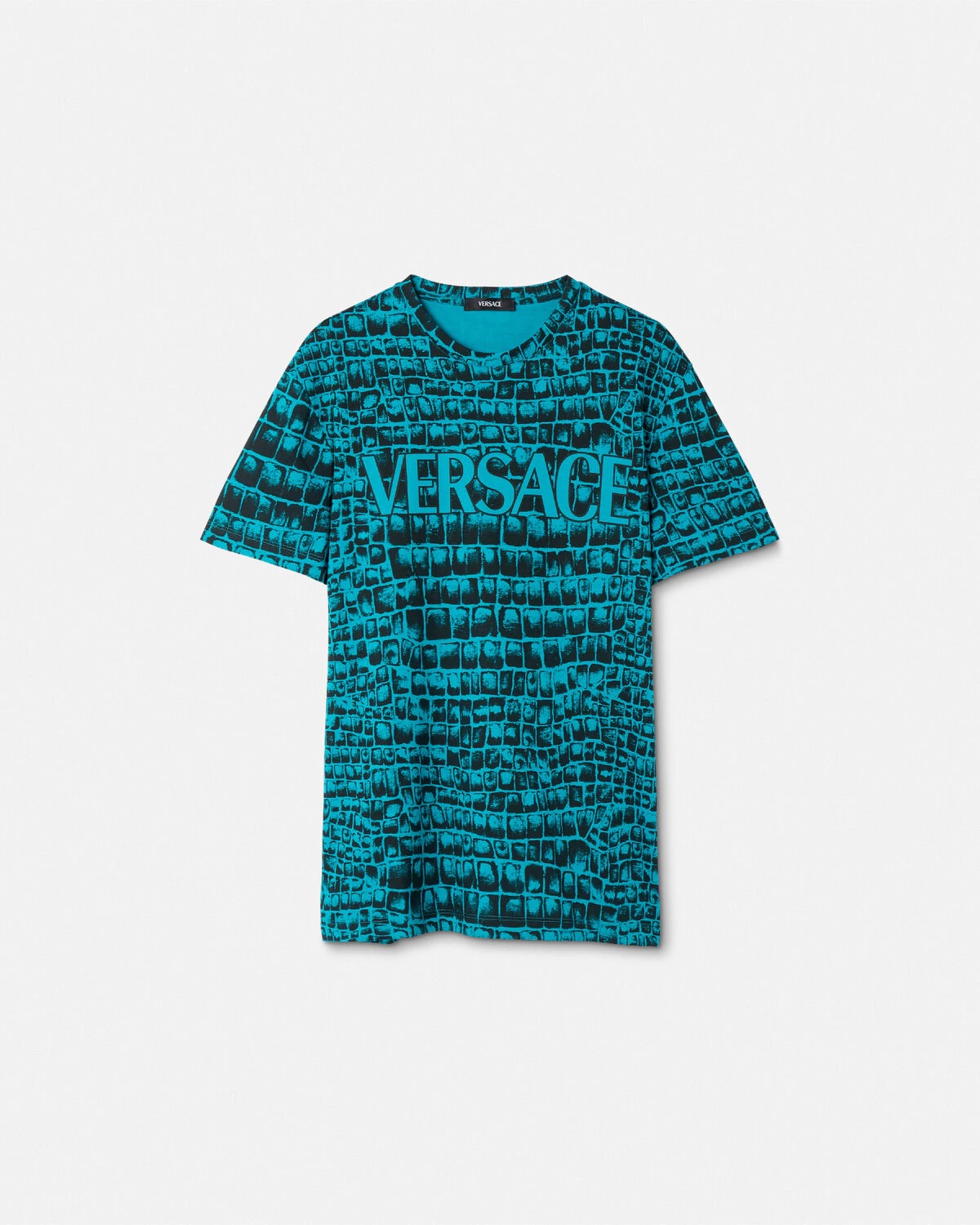 DETAILS A shortsleeved cotton jersey Tshirt featuring an allover Coccodrillo print and Versace logo at the front - Versace logo motif - Coccodrillo print - Short sleeves - Crewneck - Outer composition: 100% Cotton Item: 1013110-1A09030_2GG00 SIZE & FIT - All sizes fit Italian standards