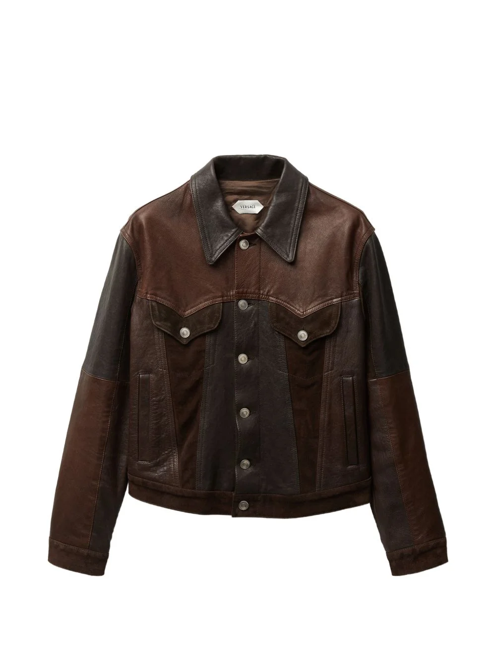 colour-block jacket Highlights - Brown - Suede panels - Button fastening - Classic collar - Buttoned cuffs - Chest pockets Imported Composition Calf Leather 100% Washing instructions Read Manufacturer Guidelines