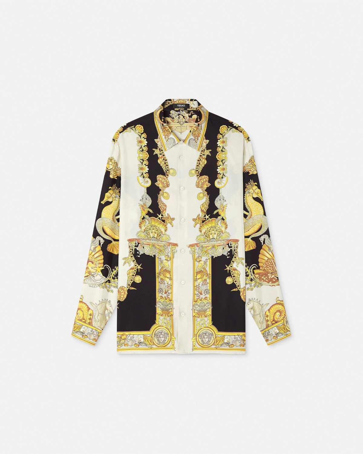 DETAILS This classic longsleeved regularfit shirt is made from silk twill and features a Coral Theatre print depicting corals shells and mermaids with theatrical elements reflecting the Houses connection to the dramatic arts - Coral Theatre print - Pointed collar - Long sleeves - Front button closure - Buttoned cuffs - Outer composition: 100% Silk Item: 1019438-1A14567_5W800 SIZE & FIT - The model is 6'3" / 1.91 m tall and wears size 48 IT