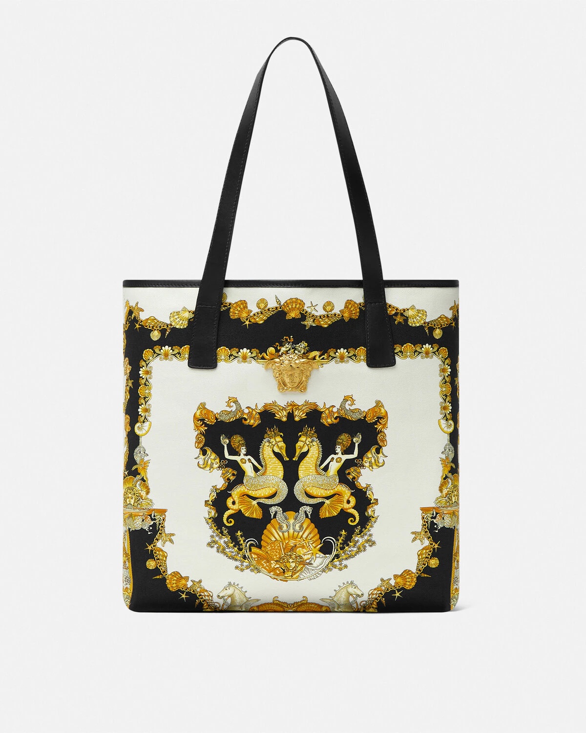 DETAILS This tote bag is crafted from cotton canvas with leather trims featuring a central threedimensional La Medusa hardware and a Coral Theatre print depicting corals seashells and mermaids with threatrical elements reflecting the Houses connection to the dramatic arts - Coral Theatre print - La Medusa hardware - Top handles - Open top - Outer composition: 100% Cotton - Lining: 100% Cotton - Trim: 100% Calf leather Item: 1020004-1A14991_5W80V&sc_eh=a500f1e946e9ea651&sc_lid=773873892&sc_llid=97582&sc_src=email_8376537&sc_uid=X7YXPrpbau&wt_mc=USA.e-mail.newsletter.mail_20250702.20250702_1708_20250702_PrintSelection_M_US.IMAGE%20md_1224264.png SIZE & FIT - L14.2 x W2.4 x H13.4" / L36 x W6 x H34 cm - Handle drop: L10.2" / L26 cm