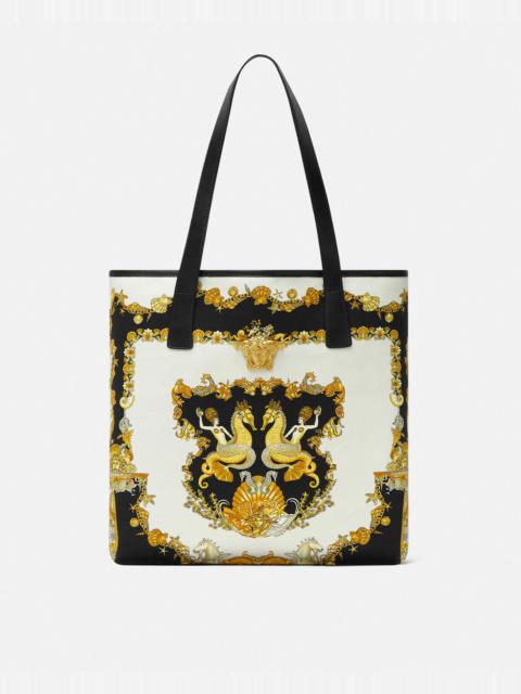 This tote bag is crafted from cotton canvas with leather trims featuring a central three-dimensional La Medusa hardware and a Coral Theatre print depicting corals, seashells, and mermaids with threatrical elements, reflecting the House's connection to the dramatic arts. - Coral Theatre print - La Medusa hardware - Top handles - Open top - Outer composition: 100% Cotton - Lining: 100% Cotton - Trim: 100% Calf leather Size & Fit - L14.2 x W2.4 x H13.4" / L36 x W6 x H34 cm - Handle drop: L10.2" / L26 cm Item: 1020004-1A14991_DTU_UNICA_5B02V__