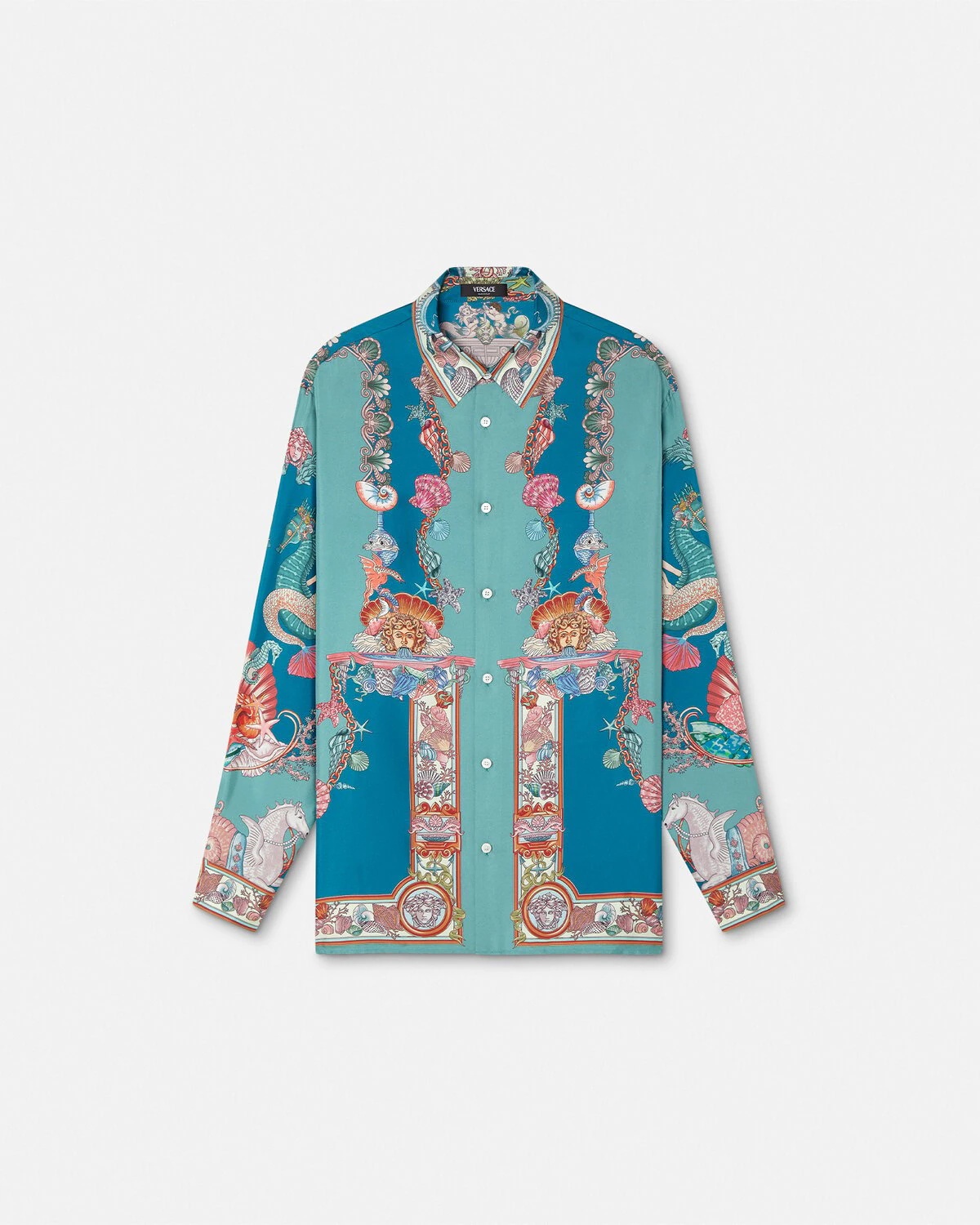 DETAILS This classic longsleeved regularfit shirt is made from silk twill and features a Coral Theatre print depicting corals shells and mermaids with theatrical elements reflecting the Houses connection to the dramatic arts - Coral Theatre print - Pointed collar - Long sleeves - Front button closure - Buttoned cuffs - Outer composition: 100% Silk Item: 1019438-1A14567_5GA00 SIZE & FIT - The model is 6'3" / 1.91 m tall and wears size 48 IT