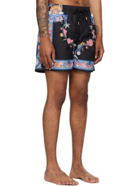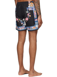 Taffeta swim shorts. · Logo graphic pattern printed throughout · Drawstring at elasticized waistband · Three-pocket styling · Mock fly · Mesh brief-style lining · Logo-engraved gold-tone hardware Part of the La Vacanza collection. Supplier color: Print Body: 100% polyester. Lining 1: 80% polyamide, 20% elastane. Lining 2: 100% polyester. Made in Italy 252404M208001