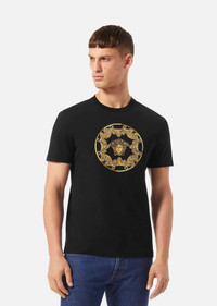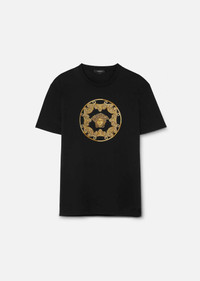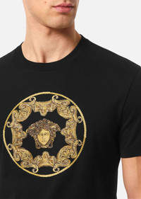 This cotton t-shirt is embellished at the front with crystals forming the Medusa. DETAILS & CARE - Crystal Medusa motif - Crew neck - Short-sleeve - Outer fabric: 100% Cotton - Trim: 100% Cotton - Embroidery: 50% Calf Leather 50% RAR - Cool iron - Delicate dry clean - Do not bleach - Tumble dry low - Machine wash warm SIZE & FIT - Taylor Fit - All sizes fit Italian standards