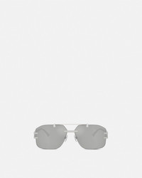 DETAILS Item: - '90s Vintage Logo plaque - Frame colour: Silver - Temple colour: Silver - Lens colour: Mirror silver - Frame: Metal - Temple: Metal Item: O2275-O10008V60_RTU_TU_ONUL__ SIZE & FIT - Lens: W2.4 x H1.9" / W60 x H47.3 mm - Bridge: 0.5" / 13 mm - Temple: 5.5" / 140 mm