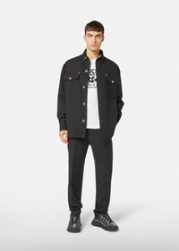 Quintessentially Versace, this classic t-shirt features the Dream Via Gesù logo printed across the chest. DETAILS & CARE - Dream via Gesù logo - Outer Fabric: 100% Cotton - Trim: 100% Cotton - Cool iron on reverse with damp cloth on top - Do not dry clean - Do not bleach - Do not tumble dry - Dry flat - Hand wash gently using mild detergent - Wash separately and inside out SIZE & FIT - All sizes fit Italian standards - The model is 1,89 m tall and wears a size M