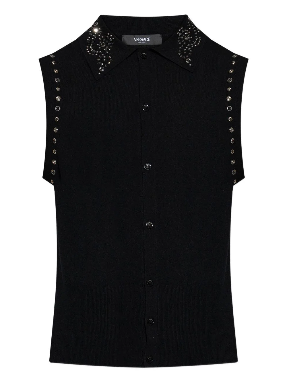 embellished collar sleeveless vest Highlights - Black - Jewel embellishment - Point collar - Button fastening - Sleeveless - Silver-tone stud detail Made in Italy Composition Wool 80%, Cashmere 20% Washing instructions Read Manufacturer Guidelines