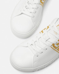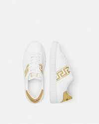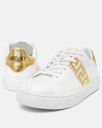 DETAILS The lowtop silhouette is characterized by an engraved Greca pattern on soles featuring Greca embroidery on the uppers A back logo stamp accents the laceup style These Greca sneakers have a 43 Responsible Input and are 100 animal free New season Greca sneakers are made using responsible materials with certified recycled content andor are derived from renewable origin - Greca embroidery - Low top - Lace up - Logo patch on tongue - Logo on heel counter - Outer composition: 100% Nylon and PU coating - Main upper made of Freebio™ RPA: leather alternative derived from recycled nylon fibers and a water-based PU coating. - Lining: 100% Polyester and PU coating - Lining and upper details made of Freebio™ rPU: derived from recycled pre-consumer polyurethane, recycled post-consumer PET bottles, calcium carbonate and wood fibers. - Trim: 100% Polyester and PU coating - Sole: 100% Thermoplastic polyurethane - Sole partially made of recycled TPU: derived from pre-consumer factory scraps generated from other outsole productions. - Toe cap and counter partially made of recycled cotton: derived from pre and post-consumer recycled cotton fibers. - Padding partially made of bio-based PU: derived from corn starch. - Strobel partially made of recycled PET: derived from post-consumer recycled PET bottles. - Insole footbed made from Biomass balance PU: derived from municipal waste methane. Item: 1014460-1A00776_2W110 SIZE & FIT - The shoe weighs approximately 0,5 kg for the model size 42 IT