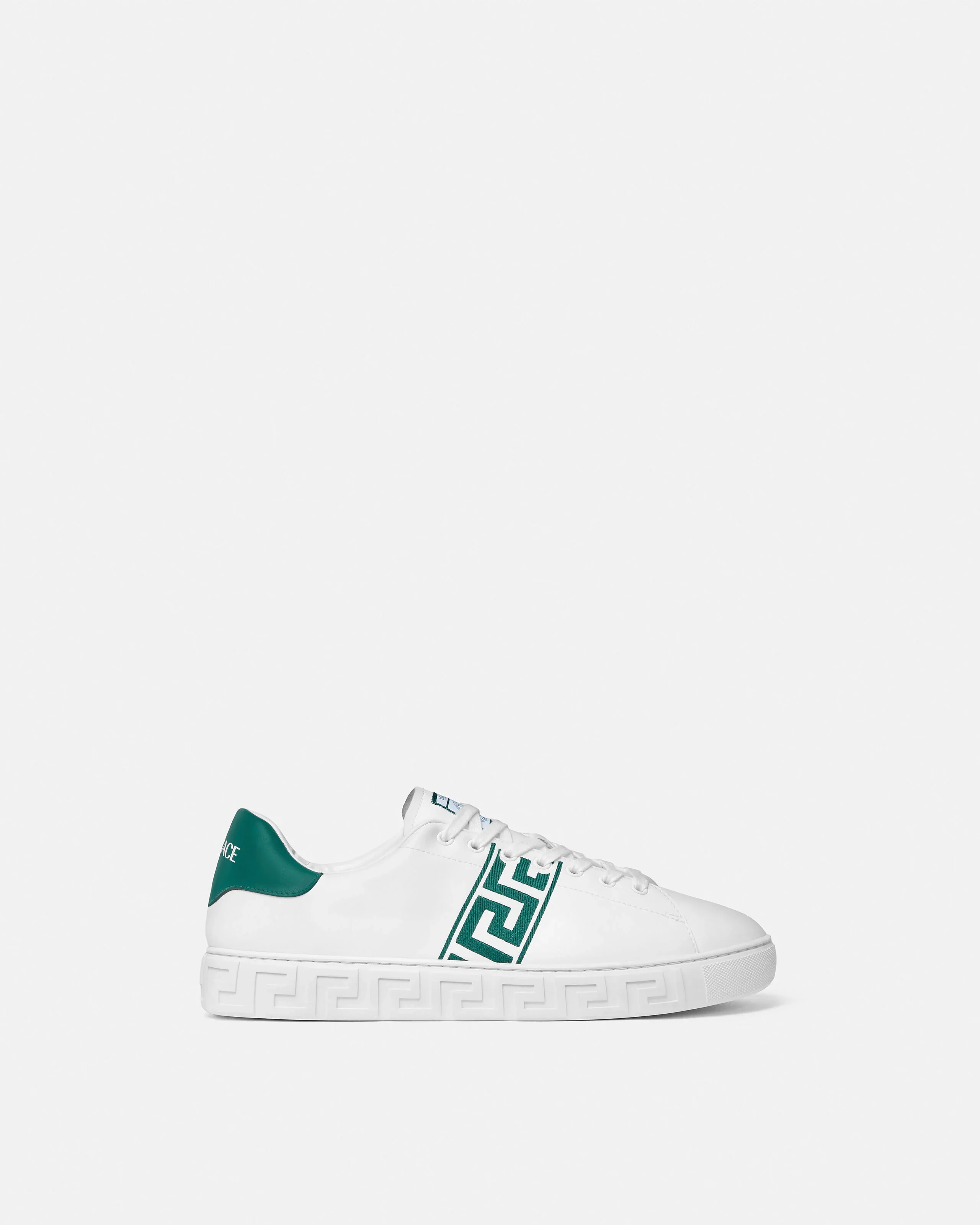 The low-top silhouette is characterized by an engraved Greca pattern on soles, featuring Greca embroidery on the uppers. A back logo stamp accents the lace-up style. These Greca sneakers have a 42% Responsible Input. Please note some upper details for this style are made of leather. New season Greca sneakers are made using responsible materials with certified recycled content and/or are derived from renewable origin. - Greca embroidery - Low top - Lace up - Logo patch on tongue - Logo on heel counter - Outer composition: 100% Nylon and PU coating - Main upper made of Freebio™ RPA: leather alternative derived from recycled nylon fibers and a water-based PU coating. - Lining: 100% Polyester and PU coating - Lining made of Freebio™ rPU: derived from recycled pre-consumer polyurethane, recycled post-consumer PET bottles, calcium carbonate, and wood fibers. - Trim: 100% Calf leather - Sole: 100% Thermoplastic polyurethane - Sole partially made of recycled TPU: derived from pre-consumer factory scraps generated from other outsole productions. - Toe cap and counter partially made of recycled cotton: derived from pre and post-consumer recycled cotton fibers. - Padding partially made of bio-based PU: derived from corn starch. - Strobel partially made of recycled PET: derived from post-consumer recycled PET bottles. - Insole footbed made from Biomass balance PU: derived from municipal waste methane. Size & Fit - The shoe weighs 17.6 oz for the model size 42 - All sizes fit Italian standards - Fits true to size, take your normal size Item: 1014460-1A10303_2W3D0