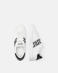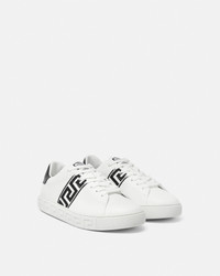 The low-top silhouette is characterized by an engraved Greca pattern on soles, featuring Greca embroidery on the uppers. A back logo stamp accents the lace-up style. These Greca sneakers have a 43% Responsible Input and are 100% animal free. New season Greca sneakers are made using responsible materials with certified recycled content and/or are derived from renewable origin. - Greca embroidery - Low top - Lace up - Logo patch on tongue - Logo on heel counter - Outer composition: 100% Nylon and PU coating - Main upper made of Freebio™ RPA: leather alternative derived from recycled nylon fibers and a water-based PU coating. - Lining: 100% Polyester and PU coating - Lining and upper details made of Freebio™ rPU: derived from recycled pre-consumer polyurethane, recycled post-consumer PET bottles, calcium carbonate and wood fibers. - Trim: 100% Polyester and PU coating - Sole: 100% Thermoplastic polyurethane - Sole partially made of recycled TPU: derived from pre-consumer factory scraps generated from other outsole productions. - Toe cap and counter partially made of recycled cotton: derived from pre and post-consumer recycled cotton fibers. - Padding partially made of bio-based PU: derived from corn starch. - Strobel partially made of recycled PET: derived from post-consumer recycled PET bottles. - Insole footbed made from Biomass balance PU: derived from municipal waste methane. Size & Fit - The shoe weighs approximately 0,5 kg for the model size 42 IT Item: 1014460-1A00776_2W020
