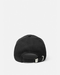 DETAILS A canvas baseball cap featuring an embroidered Versace logo. - Versace logo embroidery - Adjustable back strap - Outer composition: 100% Cotton - Embroidery 1: 100% Polyester - Embroidery 2: 53% Metallised polyester, 47% Viscose - Lining: 100% Cotton Item: 1001590-1A08103_2B150 SIZE & FIT - All sizes fit Italian standards