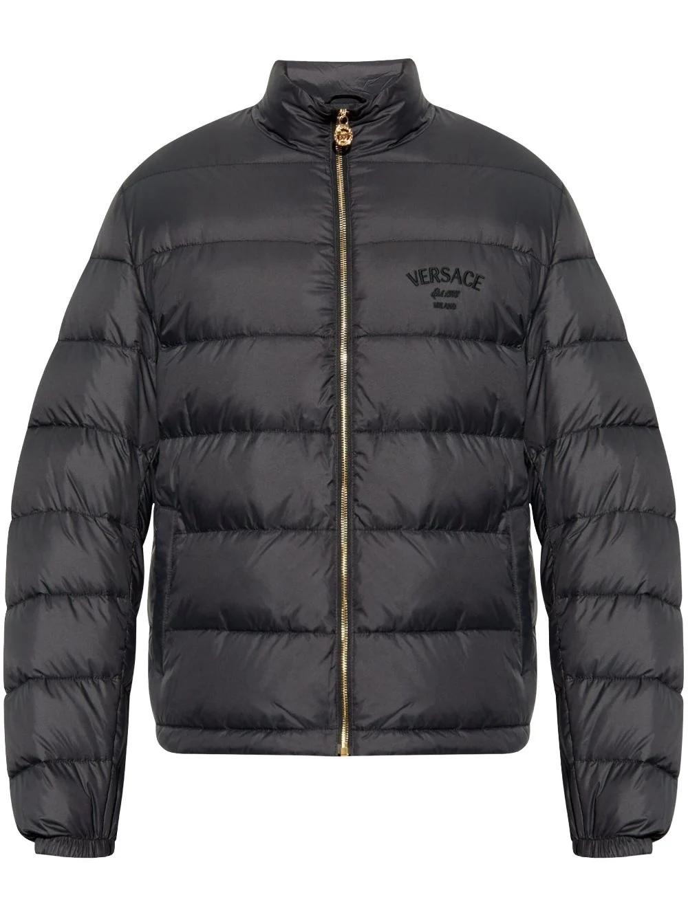 embroidered logo puffer jacket Highlights - Black - Front zip fastening - Two side welt pockets - Stand-up collar - Elasticated cuffs Imported Composition Nylon 100%