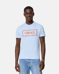 DETAILS This short-sleeved cotton T-shirt features an embroidered Versace logo at the front. - Versace logo embroidery - Short sleeves - Crewneck - Outer composition: 100% Cotton - Trim: 100% Cotton - Fabric made using GOTS-certified organic cotton yarn - Embroidery: 100% Polyester Item: 1011694-1A08584_1VD90 SIZE & FIT - The model is 6'1" tall and wears size M
