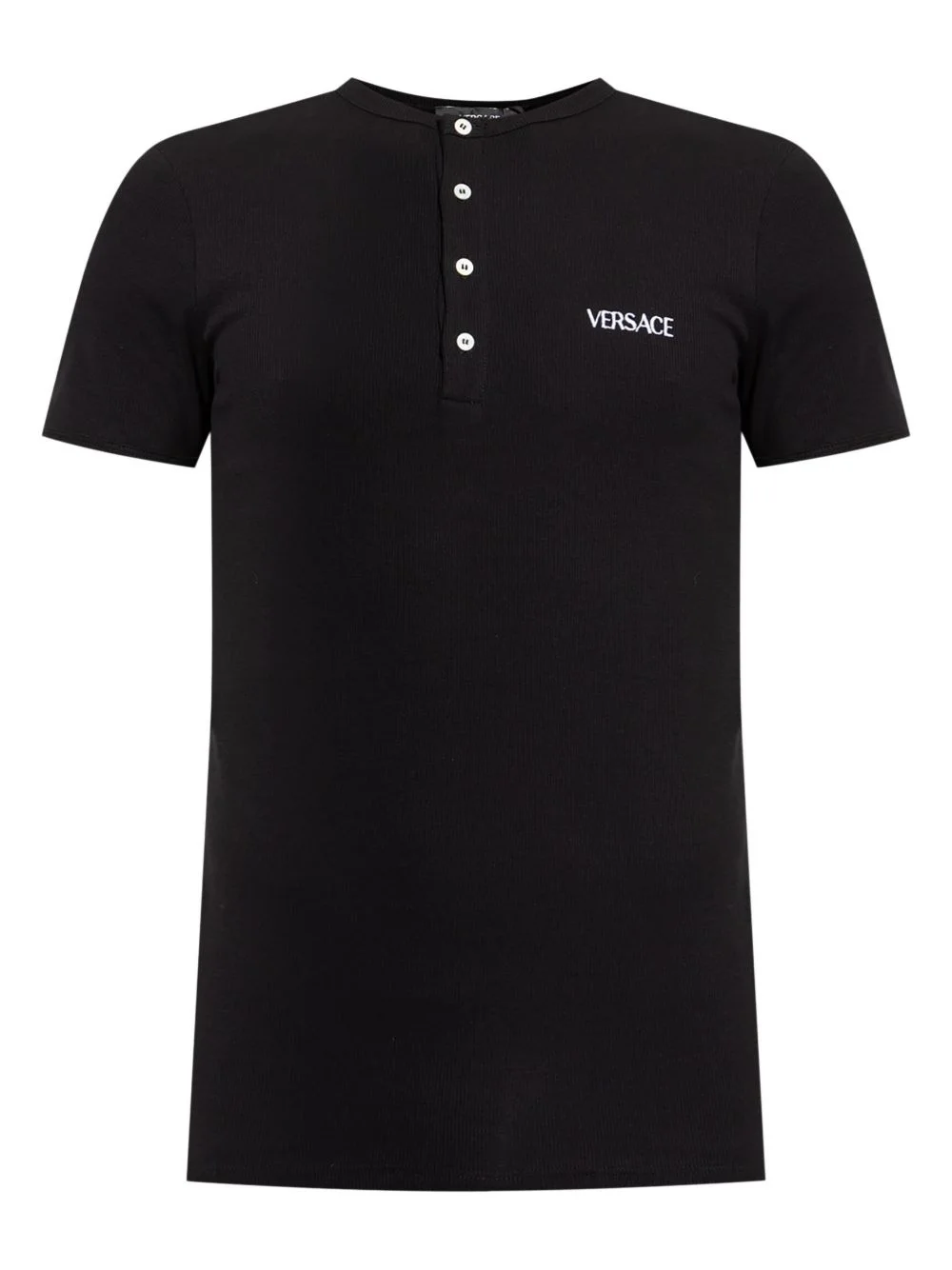 logo-embroidered T-shirt Highlights - Black - Front button placket - Henley neck - Short sleeves - Straight hem Made in Italy Composition Cotton 93%, Elastane 7%