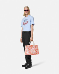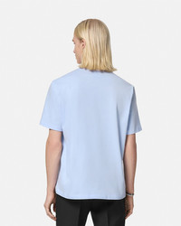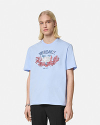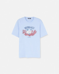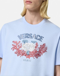 DETAILS This short-sleeved compact cotton jersey T-shirt features an embroidered Varsity-inspired crest with aquatic elements. The printed graphic is accentuated by thread-embroideries, crystal and paillette embellishments. - Versace University Coral embroidery - Paillette and crystal embellishments - Short sleeves - Crewneck - Outer composition: 100% Cotton - Trim: 100% Polyester - Trim: 100% Cotton Item: 1013302-1A11370_1VD90 SIZE & FIT - The model wears size M