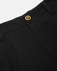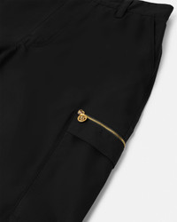 These gabardine cargo pants feature an accent enamel Medusa button, a zipped side pocket, and an embroidered Versace Logo at the back. - Medusa hardware - Versace Logo embroidery - Front button closure - Side zipped pocket - Back welt pockets - Elastic waistband - Outer Composition: 100% Cotton - Lining: 100% Cotton - Fabric made from organic cotton yarn - Embroidery: 100% Viscose - Trim: 100% Polyester Item: 1021553-1A12651_1B000