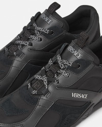 DETAILS This innovative shoe combines the agility of a boxing shoe with the power of a racing shoe Its thin versatile rubber outsole features a repeated Greca pattern The sleek last ensures a comfortable fit while the mix of calf leather suede and technical fabric provides flexibility and structure - Galaxia Logo on insole - Versace Logo embossing on tongue and heel counter - Greca motif on outsole - Greca pull tab on tongue - Low-top - Lace-up - Round toe - Outer composition: 100% Calf leather - Lining: 91% Polyester, 9% Calf leather - Trim 1: 100% Calf leather - Trim 2: 100% Nylon - Sole: 100% Rubber Item: 1017878-1A12892_1B000 SIZE & FIT - The shoe weighs approximately 14.1 oz / 0.4 kg for the model size 44 IT