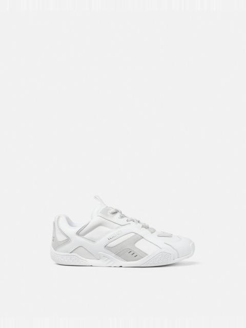 DETAILS This innovative shoe combines the agility of a boxing shoe with the power of a racing shoe Its thin versatile rubber outsole features a repeated Greca pattern The sleek last ensures a comfortable fit while the mix of calf leather suede and technical fabric provides flexibility and structure - Galaxia Logo on insole - Versace Logo embossing on tongue and heel counter - Greca motif on outsole - Greca pull tab on tongue - Low-top - Lace-up - Round toe - Outer composition: 100% Calf leather - Lining: 91% Polyester, 9% Calf leather - Trim 1: 100% Calf leather - Trim 2: 100% Nylon - Sole: 100% Rubber Item: 1017878-1A12892_2EJ70&sc_eh=2a40dc58d477448d1&sc_lid=715046291&sc_llid=3381&sc_src=email_7581536&sc_uid=z7q9vOjm92&wt_mc=BEL.e-mail.newsletter.mail_20250316.20250316_1019_20250315_Galaxia-Shoes-Sneakers_M_EMEA.IMAGE%20md_1078759.png SIZE & FIT - The shoe weighs approximately 14.1 oz / 0.4 kg for the model size 44 IT - Footbed: slim - Fits true to size, take your normal size