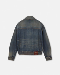 This medium stonewashed blouson jacket is crafted from traditional Japanese denim renowned for its unique hand-treated fade and durable quality overtime. The outerwear style features an accent Medusa Biggie zip puller and enamel Medusa buttons at the cuff. - Medusa Biggie hardware - Medusa hardware - Made in Japan Versace Logo leather patch - Long sleeves - Pointed collar - Front zip closure - Buttoned cuffs - Outer Composition: 100% Cotton - Trim: 100% Calf Leather Size & Fit - The model is 6'2" / 1.87 m tall and wears size 48 IT Item: 1021110-1A15407_1D800