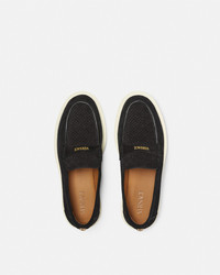DETAILS These suede loafers are enriched with a Greca motif on the front and Versace Logo hardware - Versace Logo hardware - Medusa hardware - Greca motif - Round toe - Penny loafer strap - Outer composition: 100% Calf leather - Lining 1: 100% Calf leather - Lining 2: 100% Goat leather - Sole: 100% Rubber Item: 1017591-1A14340_1B00V SIZE & FIT - The shoe weighs approximately 21.2 oz / 0.6 kg for the model size 42 IT - Heel: 1.2" / 3 cm - Footbed: regular - Fits true to size, take your normal size