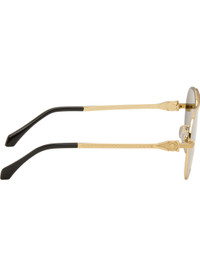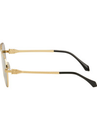 Aviator-style metal-frame sunglasses. · Brown lenses · Logo etched at lens · 100% UVA/UVB protection, category 3 · Top bar · Adjustable rubber nose pads · Logo hardware at face and temples · Graphic engraved at temples · Black acetate trim at temple tips · Includes case · Size: 61.13 140 Supplier color: Gold Metal, acetate. Made in Italy 252404M134005