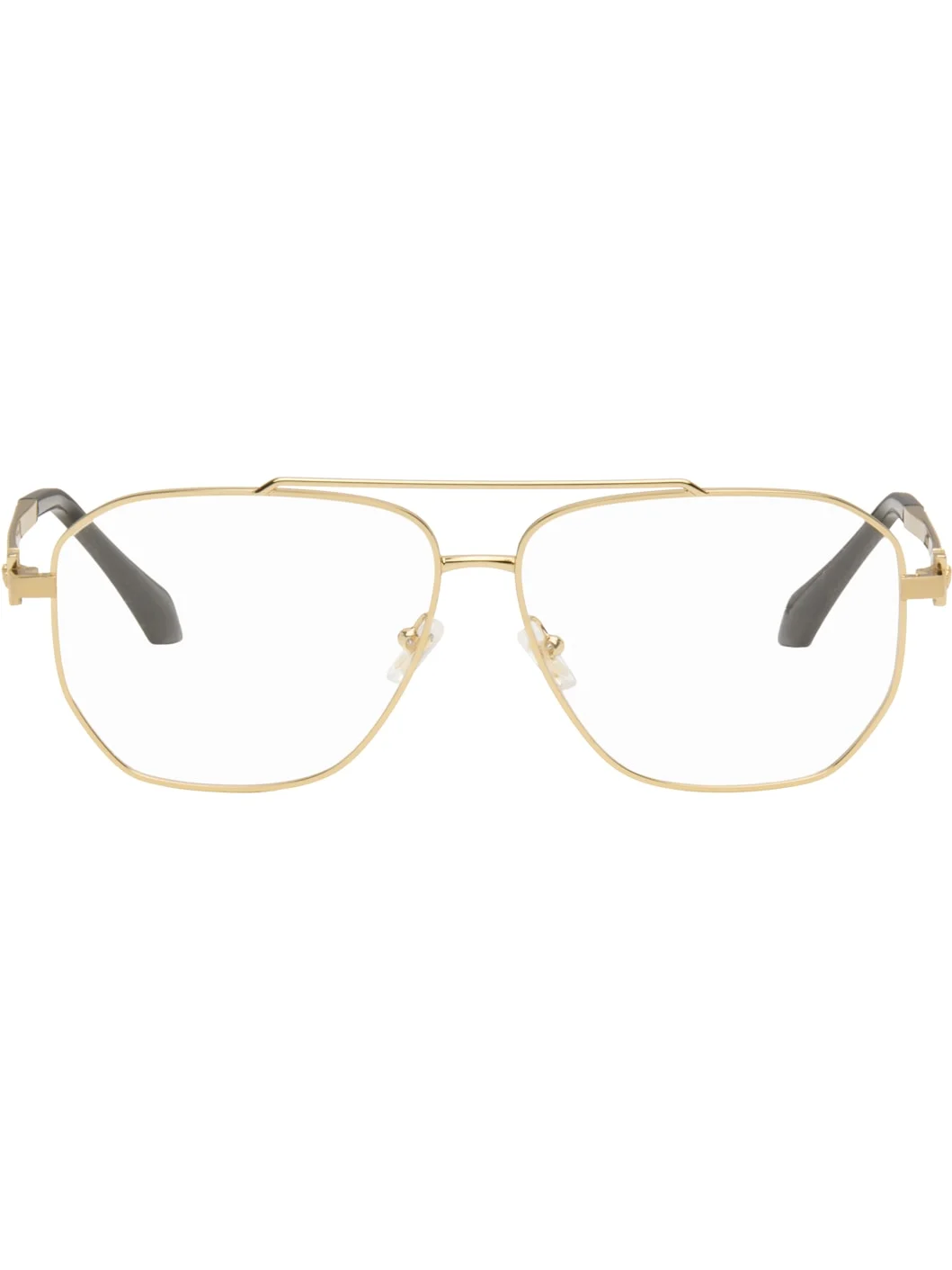 Aviator-style metal-frame optical glasses. · Adjustable rubber nose pads · Top bar · Logo hardware and engraved graphic at temples · Black acetate trim at temple tips · Includes case · Size: 59.12 140 Supplier color: Gold Metal, acetate. Made in Italy 252404M133000