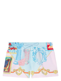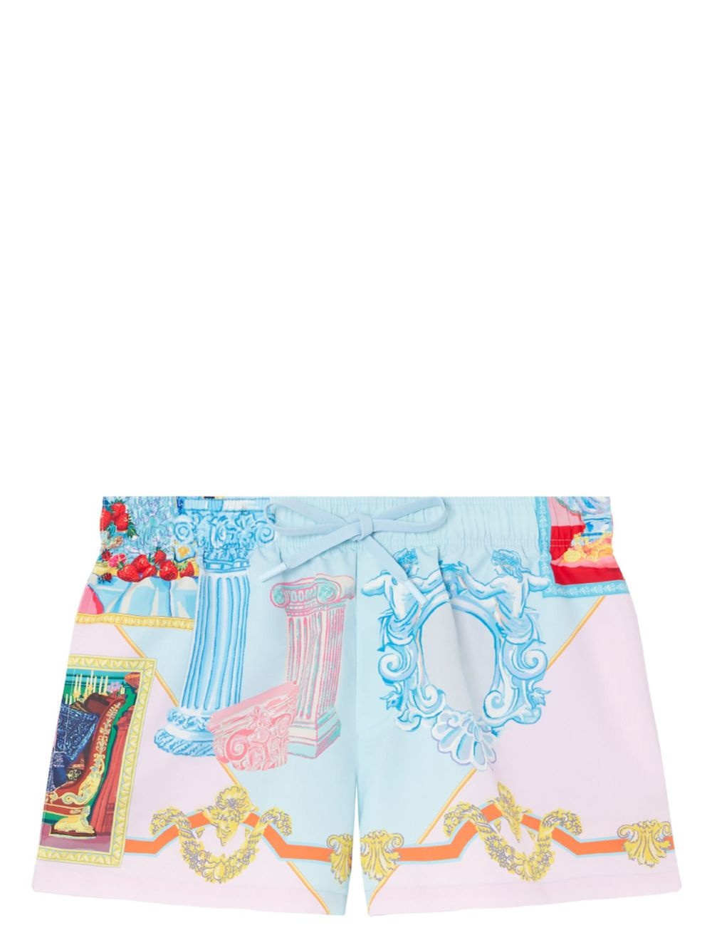 graphic-print swim shorts Highlights - Light pink/multicolour - All-over graphic print - Elasticated drawstring waistband - Two side slit pockets - Rear zip-fastening pocket - Be mindful to try on swimwear over your own garments. Imported Composition Fabric 100%