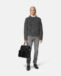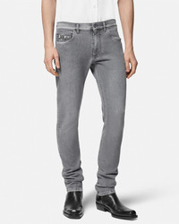 DETAILS These slimfit stretch jeans in a faded stonewashed finish are accented with the Medusa Biggie hardware on the classic fivepocket design - Medusa Biggie hardware - Belt loops - Front button and zip closure - Five-pocket design - Versace logo leather patch - Outer composition: 99% Cotton, 1% Elastane - Trim: 100% Calf leather Item: 1011693-1A11274_1D280 SIZE & FIT - The model is 6'1" / 1.87 m tall and wears size 32 IT