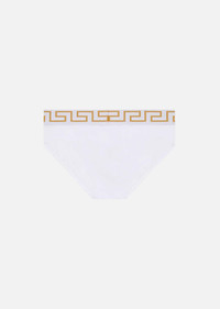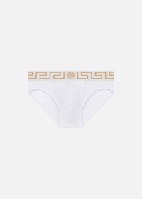 Cotton briefs boasting the Greca and a central Medusa motif featured on the elasticized waistband. DETAILS & CARE - Greca pattern - Medusa - Outer Fabric: 94% Cotton, 6% Elastane - Gusset: 94% Cotton, 6% Elastane - Trim: 81% Polyester, 17% Elastane, 2% Nylon - Do not iron - Delicate dry clean - Hand wash gently using mild detergent - Do not bleach - Do not tumble dry SIZE & FIT - All sizes fit Italian standards