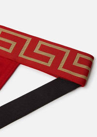 Stretch cotton jock strap, with iconic Greca pattern featured on the elasticated band. Features an elasticized waist band with a Greca and Medusa motifs DETAILS & CARE - Greca border - Greca band - Jockstrap - Outer Fabric: 94% Cotton, 6% Elastane - Trim: 81% Polyester, 17% Elastane, 2% Nylon - Gusset: 94% Cotton, 6% Elastane - Do not iron - Delicate dry clean - Hand wash gently using mild detergent - Do not bleach - Do not tumble dry SIZE & FIT - All sizes fit Italian standards