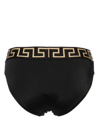 black/gold-tone stretch-design elasticated logo waistband Medusa Head motif slip-on style Be mindful to try on swimwear over your own garments. Size & Fit Model Measurements: Bust: 0cm Height: 0cm Hips: 0cm Waist: 0cm Fabric and Care Designer Style ID: ABU010251A11119 Designer Colour: A80G Black/ Gold/ Greek Key Composition: Outer: Polyamide 78%, Spandex/elastane 22%; Lining: Polyester 88%, Spandex/elastane 12% Washing instructions: Hand Wash Made in Italy
