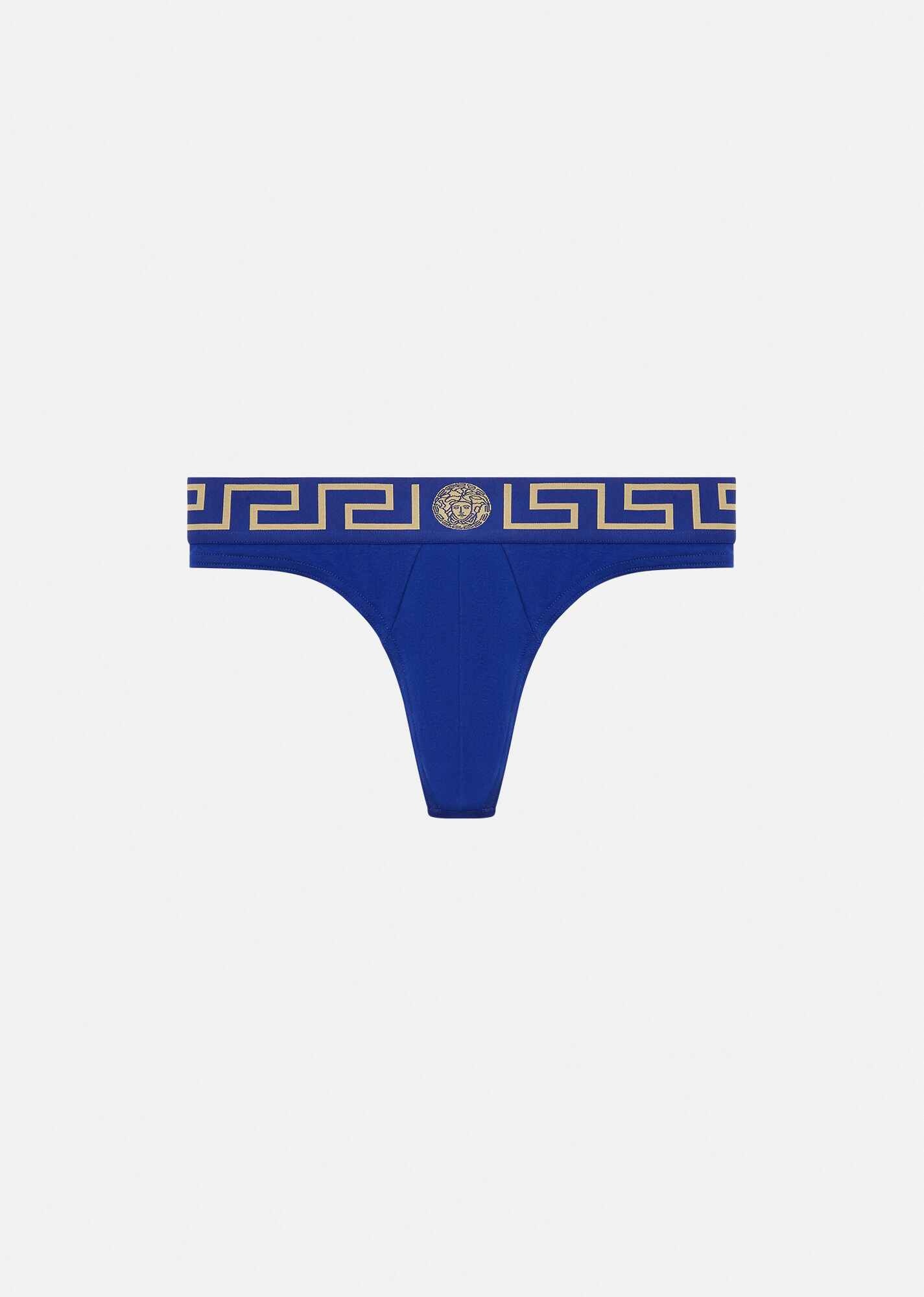 Stretch, cotton thong with a central Medusa motif and the Greca on the elasticized waistband. DETAILS & CARE - Outer Fabric: 94% Cotton, 6% Elastane - Gusset: 94% Cotton, 6% Elastane - Trim: 81% Polyester, 17% Elastane, 2% Nylon - Do not iron - Delicate dry clean - Hand wash gently using mild detergent - Do not bleach - Do not tumble dry SIZE & FIT - All sizes fit Italian standards