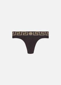 Stretch, cotton thong with a central Medusa motif and the Greca on the elasticized waistband. DETAILS & CARE - Outer Fabric: 94% Cotton, 6% Elastane - Gusset: 94% Cotton, 6% Elastane - Trim: 81% Polyester, 17% Elastane, 2% Nylon - Do not iron - Delicate dry clean - Hand wash gently using mild detergent - Do not bleach - Do not tumble dry SIZE & FIT - All sizes fit Italian standards