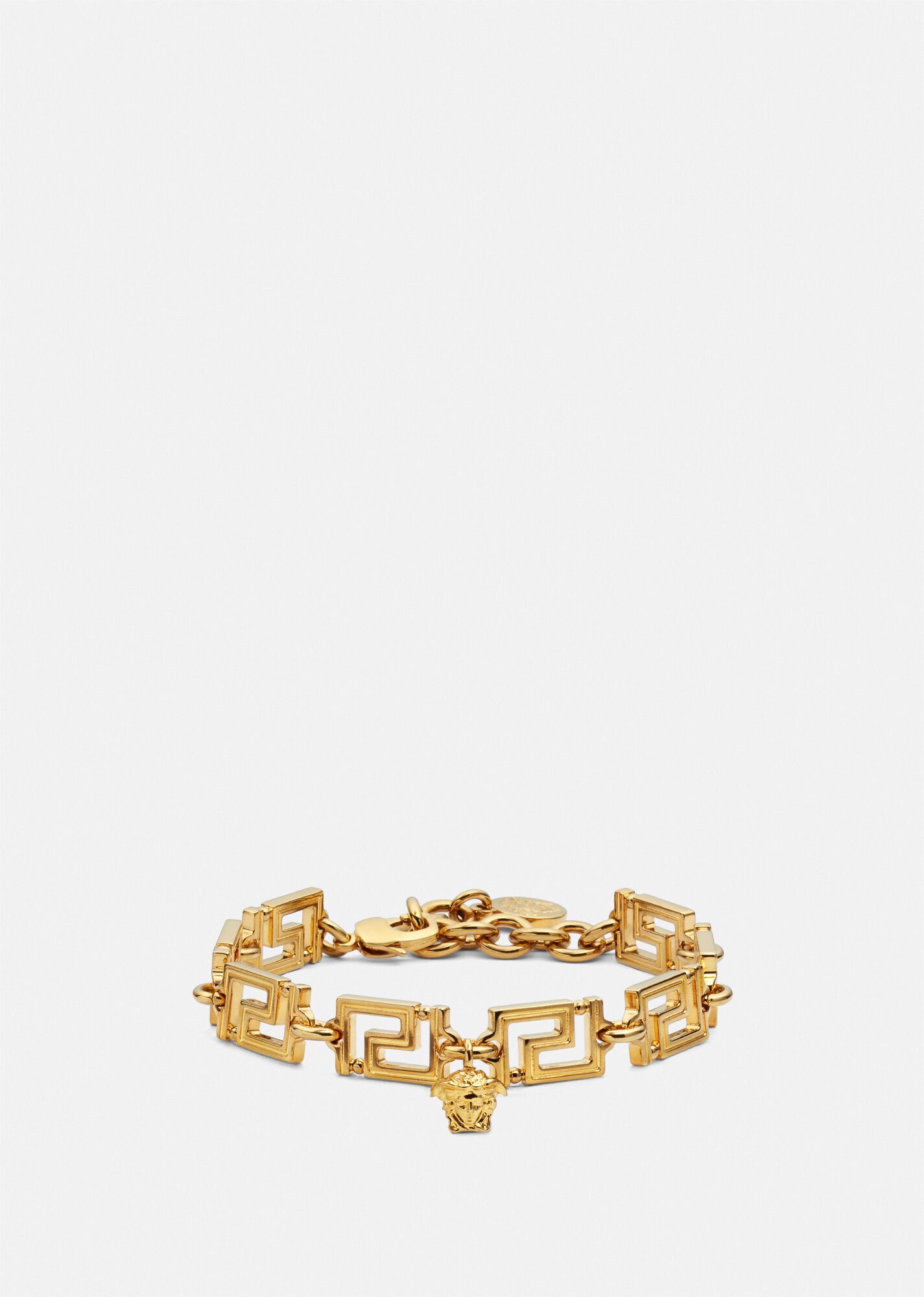 A Greca chain bracelet enriched with a Medusa charm, featuring a lobster clasp closure. All Versace jewelry products are lead and nickel free. All materials are hypoallergenic. DETAILS & CARE - Greca chain - Medusa charm - Lobster clasp closure - Metal: Brass - Please note water and perfume may damage the item - Made in Italy SIZE & FIT - Length: 17 + 5 cm